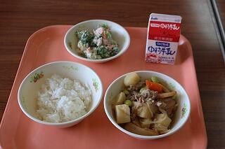 ・ごはん ・肉じゃが ・ブロッコリーのマヨネーズ和え ・牛乳