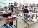 さて、渡り廊下に出てみると、軽快な音楽が聞こえてきました。音楽室に行ってみると、3・4年生が合奏の練習をしていました。曲名は「パフ」。たいへん上手に練習の成果を聞かせてくれました。続いて、「よろこびの歌」をリコーダーで演奏しました。あれが食べたくなる楽しい演奏でした。