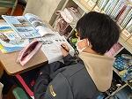 1・2年生は国語で、図書館で学習していました。1年生は、さるかに合戦などの昔話を読んで、読書きろくノートに感想などを記録していました。2年生は、「お気に入りの本を紹介しよう」という単元で、先日読み聞かせで読んでもらった「めっきらもっきら どおんどん」というお話を選んで、メモに書いていました。どういうところが気に入ったのか、面白かったのかを文章に書くのは、なかなか難しいようでした。