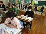 3・4年生は国語の書き方で「毛筆」でした。3年生は「日」、4年生は「左右」の字を書いていました。字のバランスがなかなか難しいようでした。4年生は名前までしっかりと書いていました。また、宮日新聞のみんなの作品の欄に応募します。