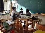 5・6年生は理科で「大地のつくりと変化」について、プリントで学習内容を確かめていました。水の流れのはたらきと火山のはたらきでの地層の違い等について問題を解きながら確認していました。テスト前のたしかめになったと思います。