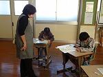 1・2年生は算数で、それぞれ2学期の復習をしていました。たくさんのプリントが用意されており、1枚ずつ丸付けをしてやりなおし、満点になったら次のプリントへ進みます。これまでの総復習です。しっかり定着させて冬休みを迎えたいですね。