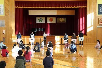 始業式では、1年生りあらさんと6年生みうさんが作文発表をしてくれました。3学期の目標をしっかり発表できました。
