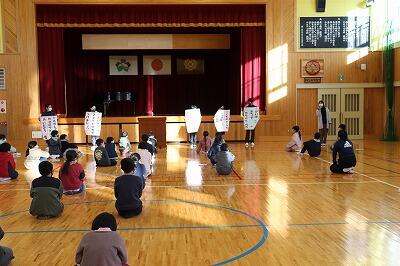 始業式の後に、1月の生活目標である「かぜを予防しよう」について、保健委員会の児童と一緒にお話しました。