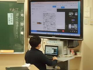 高崎地区全小中学校をオンラインでつないで、TZミーティングが行われました。今回は6月のミーティングで決めた、「ふるさとを知る交流活動」についての各校の実践発表が行われました。縄瀬小は田植えや稲刈り、奴踊り、北斗鍋作り、グランドゴルフなどを紹介しました。体験をもとにしているのでしっかりと伝わる発表になっていました。本部会場の本校には高崎地区の方々8名に来ていただき、発表を視聴していただき、代表で縄瀬地域公民館長様に各学校の取組のよさや地域が児童生徒を大事にしていることなどありがたい講評をいただきました。また、会の後半では令和6年度の取組についてフォームでアンケートを取り、テーマを決めました。今年の実践を生かし、更に充実した交流活動になることを期待しています。