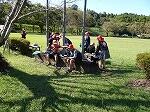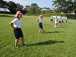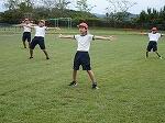 そんな中、運動会に向けて練習もがんばっています。6年生は体育で、団技「風よ!舞い上がれ」の練習をしていました。二人組で竹をもってカラーコーンを回ります。戻ってきたら団の他の児童の足元に竹を通し、上から次の組にバトンタッチします。これを繰り返し速さを競うものです。これまで体育館での練習はしてきましたが、フィールドは芝で少し湿っていて勝手が違うようでした。今日の練習を通して作戦を立てて運動会に向けてがんばってほしいです。
