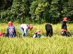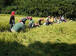 最初に、元気田の西側、次に北側を協力して刈っていきました。