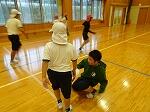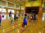 5・6年生が遊びなどを工夫して、1・2年生を招待して交流会が行われました。初めに、氷オニをしました。1・2年生の走力や安全面を考えた工夫で、走ってはいけないルールでした。後は鬼からタッチされたらその場にしゃがみ、まだタッチされていない仲間からタッチされたら氷が溶けてまた動き出すといったルールでした。鬼が追いかけ、みんな逃げ回りますが、体育館に笑顔があふれていました。