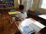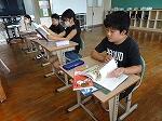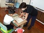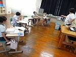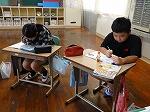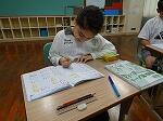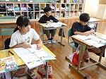 4年生は算数で、上の教科書が終わり、その総復習でした。教科書の問題の後、プリントに挑戦していました。たくさんの内容があり、一つ一つしっかり復習していました。