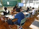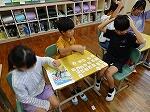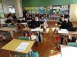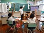 3・4年生は外国語活動で、「ALPHABET」の学習でした。ABCの歌を歌った後、A~Zのカードを、アルファベット順に並べました。みんなよく知っているようでした。その後、2~3人組で、「ポイントゲーム」をしました。ペリー先生が黒板で指した文字と同じカードを、机上のカードの中から選んで指すというゲームです。楽しくアルファベットを探していました。