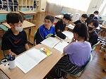6年生は算数で、比を使った問題にチャレンジしていました。6年教室では、教科書の問題やドリル、プリントなどを自分のペースで進めていました。できた人は久場先生のところに持って行って丸付けをしてもらいます。正解した時には称賛を、間違った時にはヒントをもらっていました。間違いはやり直し終わったら次の課題へ。どんどんがんばっていました。あおぞら学級では、宮内先生と2人が、比の問題に挑戦中!問題の意味をしっかりとらえて、すらすら解いていました。