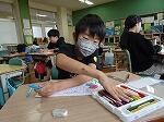 9月29日(月)、1・2年生は図画工作で、「おはなしのえ」の仕上げをしていました。1年生は「ライオンとネズミ」、2年生は「からたちばやしのてんとうむし」というお話を読んで、心に残った場面の絵を描いていました。ライオンやネズミ、テントウムシやクモなど、登場する動物や虫たちを大きく書いて迫力があります。完成が楽しみですね。