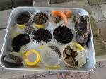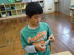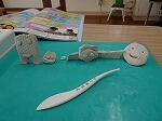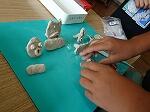1・2年生は図画工作で、「いろんなともだちはなしだす」という単元でした。型押しした粘土に顔をつけるというものです。壁や入れ物など、型押しすると面白い模様になるものを探して型を取り、それに目や口などをつけて作品にしていきます。とっても楽しくできていました。
