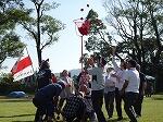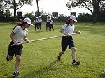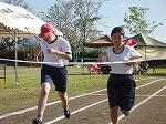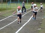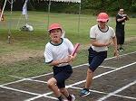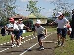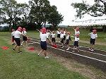 休憩をはさみ、もう一度、全員リレーを行いました。今回は、数回、赤白順位が入れ替わり、益々の接戦でした。途中でバトンを落とすハプニング等もありましたが、最後はアンカーの団長勝負! わずかの差で赤団が勝ちました。