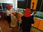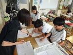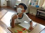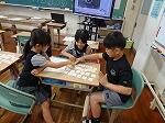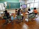 1・2年生は算数でした。1年生は「かたちづくり」の学習で、三角形の色板を並べて、いろんな形づくりに挑戦していました。教科書に載っている形を上手に作っていました。2年生は「かけ算」の学習で、6の段にチャレンジしていました。30秒でのぼり九九、下り九九、ばらばら九九を言えたら検定に合格するそうで、早速挑戦していました。もうすでに、3の段、5の段はクリアしているそうです。