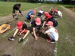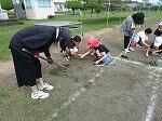 また、清掃の時間には、全校児童で運動場のトラックの部分の整備をしました。草が伸びてきて少し走りづらいため、先生方が表面を削って草を掘り起こした後、子どもたちが草を丁寧に取っていきます。10日後に迫った運動会に向けて、やれることをやっていきます。
