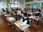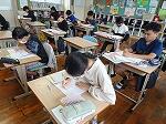 4年生は国語で、「漢字・ことばのたしかめ」のテストでした。最初の5分間、復習をしていましたが、なかなか難しそうでした。テストでも途中途中で考え込む様子が見られました。さて、100点取れるでしょうか?