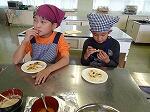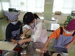 1・2年生とあおぞら学級の4人が合同で、自分たちで育ててきたさつまいもを使って、調理を行いました。はじめに、自分たちで収穫したさつまいもをきれいに洗い、細かく包丁で切っていきます。それを鍋で煮て煮えたら、バター、砂糖などを入れたボールに入れてよくつぶします。それを4等分にした春巻きの皮に包んでトースターで焼きます。とっても甘いいいにおいがしてきました。そして「いただきます!」