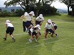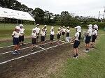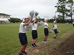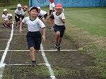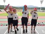 そして、400mリレーです。男子の部に、4人が出場しました。1組目の登場でしたが、五十市小、上長飯小、西小、沖水小、大王小、有水小と大規模校と同じ組でした。でも、それに負けない力走を見せ、7コースをしっかり走りバトンパスもうまくできました。たいへんよくがんばりました。