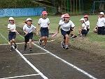 この時間、リーダーの笛の合図や子どもたちの声が学校中に響き渡っていました。運動会に向けてがんばっているなわぜっこです。