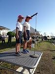 次の一般80mには、男子5人、女子4人が出場しました。他の学校の子どもたちと走るのはとても緊張したと思いますが、みんな最後まで全力で走り切りました。藏元陽大さんと甲斐陽菜乃さんは、各組3位以内に入り、賞状をもらいました。