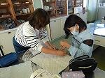 10月29日(水)の3・4校時に、6名のミシンボランティアの方が来校してくださいました。家庭科の授業でミシンを使いますが、なかなか大変です。ミシンボランティアは、時間内によい作品を作る上でもとても助かります。初めに作成の手順について説明があり動画を見ました。主な手順は、①しるしをつける、②仮縫いをする、③両脇を縫う、④出し入れ口を縫う、⑤口空きどまりを縫う、です。先日①は終わり、②が途中の子と終わったいる子がいる状態でした。各班に1名ずつ、ミシンボランティアの方がついてくださり、懇切丁寧に教えていただきました。仮縫いが終わり、早速ミシンで両脇を縫い始める子もいましたが、丁寧に教えてくださり、スムーズに縫えていました。⑤まで行くのは大変かと思いましたが、おかげさまでどんどん進めることができました。