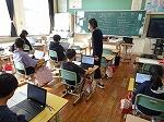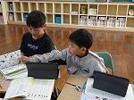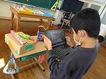 1・2年生も国語でした。篠原先生がお休みで校長先生と学習しました。1年生は「くじらぐも」、2年生は「お手紙」のプリントを2枚、自力で解いていきました。とてもよくできていました。少し間違ったところはしっかりやり直しをして、全部100点満点にすることができました。その後は、タブレットを使って、Qubenaやひなた電子図書館で楽しみました。