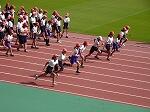 開会式の後、100m走はありました。今年は、1種目しか出場できないため、縄瀬小の児童は参加しませんでした。でも、他の学校の児童が一生懸命走る姿を応援したり、速いタイムが出る度に驚きの声をあげたりしていました。