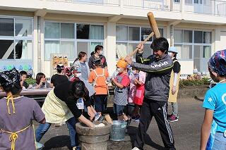 その後は、保護者の皆様が、朝から準備してくださって、餅つき大会が行われました。重いきねを振り上げて、一生懸命に餅つきに挑戦する子どもたち。最後はやはり力持ちのお父様方につきあげていただきました。皆様の御加勢のお陰で、おいしいお餅をつくことができ、笑顔いっぱいの子どもたちでした。いつものことですが、感謝の気持ちでいっぱいです。ありがとうございました。