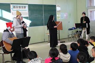 <楽器の演奏や歌を楽しみました。ギターは1年担任の中野先生です。>