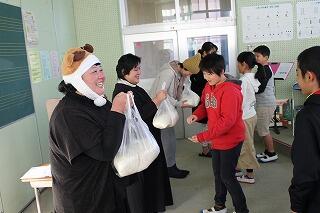 子どもたちがずっと楽しみにしていたロング読み聞かせが行われました。日頃から、子どもたちに読み聞かせをしてくださっている「すぎのこ倶楽部」の皆さん方です。時間をかけて準備や練習をしてくださいました。子どもたちが喜ぶようにと、一足早いクリスマス会の意味も込めて、読み聞かせあり、楽器の演奏あり、歌あり、ゲームありで、衣装にも手が込んでいるでしょう?あっという間の楽しいひとときでした。最後にお礼の気持ちを込めて、子どもたちがつくった餅米をプレゼントして、喜んでいただきました。これまでありがとうございました。