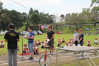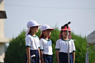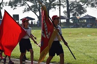 台風18号通過のため、19日(火)の平日開催となった運動会。前日に保護者の皆さんが集合して、万国旗を張り、入退場門を設置してくださいました。当日朝は、早朝6時半にまた保護者の皆さんが来てくださって、テントを立てたり、机いす等を運んでくださったりして、準備を整えてくださいました。おかげさまで、8時30分に入場を開始し、、盛大に運動会を開催することができました。期日変更にもかかわらず、来賓の皆様や保護者の皆様、地域の皆様がご多用な中にもお時間の都合をつけてくださって、子どもたちが寂しくないようにと、入場行進から閉会式、そして後片付け完了まで、力を尽くしてくださいました。感謝の気持ちでいっぱいです。誠にありがとうございました。子どもたちは、その声援に応えるように力いっぱい走り、踊り、競技しました。また、厄払い記念品として、一輪車を15台も頂戴しました。毎年のことながら、母校をいつまでも大事に想っていただいて、ありがたいばかりです。