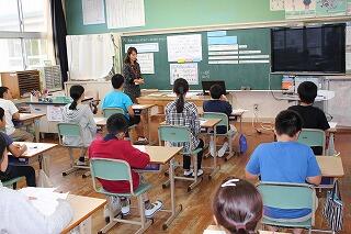 中国から日本に来られて国際交流員として活動されている、許 錦(きょ きん)さんが本校に来てくださいました。3・4年生の子どもたちは、ずっと前から楽しみにしていました。はじめは教室で中国の紹介、後半は体育館で一緒に体を動かして楽しみました。給食も一緒にいただいて、うれしそうな子どもたちでした。ありがとうございました。