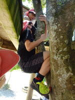 7月4日(木)に、6年生が縄瀬保育園を訪問しました。初めに、園庭をぐるっと見て回りました。たくさんの動物たちや木々があり、興味津々でした。早速木に登る子もいました。縄瀬保育園出身の子もおり、当時いらした先生との再会をとても喜んでいました。