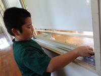 早速掃除の様子を見てみました。放送をしっかり聞けていたようで、教室の出入り口やサッシの溝をきれいにしている子どもたちがたくさんいました。
