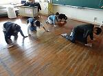 5・6年生は体育で、体育館で運動会の団技の練習でした。A団。B団に分かれて作戦を練っていました。その後、軽くやってみました。同じ団の子にアドバイスを送る姿も見られました。勝敗のカギは作戦にあります。どちらがよりコツをつかみ勝利を手にするのでしょうか?