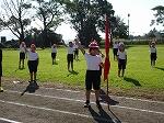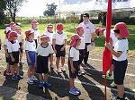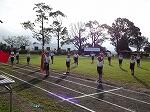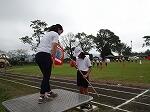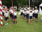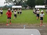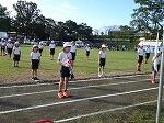 開会式の練習の後、各団までの退場の練習をしました。1~4年生は団長先頭で1コースを、5・年生は副団長先頭で2コースを駆け足で退場していきました。そして団長の掛け声にそろえて、各団の前で止まり着団しました。
