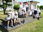 次に、自分の位置の確認をしました。6年生を最前列にして、それを基準に並んでいきました。一度並んだあと、一旦テントに戻り、その後、最初の隊形に戻る練習をしました。20秒以内でと言われましたが、10秒で並ぶことができました。すばらしい!