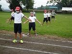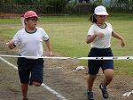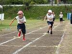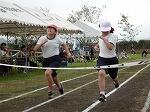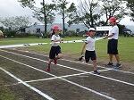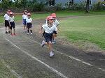 1時間目は雨が降りそうな空模様の中、1・2年生が徒走の練習をしていました。最初は短い距離からダッシュして、だんだんと距離を延ばしていきます。走り終わるとさっとスタート位置に戻り、また走り出す1・2年生。きびきびとした姿が見られました。
