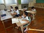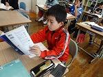 3年生は国語のテスト「聞く・話す」でした。文章をまず聞いて問題にこたえるものです。メモもできますが、しっかり聞いて内容を理解する力が試されます。2年生は、皿に1つずつ乗ったケーキの場面をもとに、1の段のかけ算九九作りに挑戦していました。九九が出来上がると、教科書の問題、スキルの問題、Qubenaの問題に挑戦してました。1年生は形づくりの復習です。プリントを仕上げて先生に丸付けをしてもらっていました。