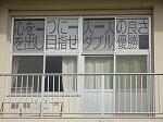 運動会まであと10日となりました。今日は、2・3校時に、運動会全体練習を行いました。初めに、閉会式の練習です。成績発表や校歌斉唱など、本番通りに進めていきました。それぞれの担当児童がしっかりと動くことができていました。その様子を、校舎2階に貼られた、運動会のテーマ「心を一つに一人一人の良さを出し目指せダブル優勝」の文字が見守ります。