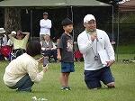 運動会終了後、「厄払い記念贈呈式」がありました。平成7年度卒業生の方々から、体育等で使えるジャンボリングゴール二組や体育用具一式を寄贈してくださいました。今後、大切に使わさせていただきます。卒業後もずっと母校の縄瀬小を思い続けていらっしゃる気持ちには感謝しかありません。学校からは感謝状を贈らせていただきました。贈呈式終了後は、子どもたちや地域の方向けに餅まきがあり、盛り上げていただきました。