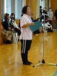 そしていったんいすなどを教室に運んだあと、会場を体育館に移し閉会式を行いました。閉会式では成績発表があった後、優勝旗授与、応援賞トロフィー授与がありました。協議の部優勝は白団、応援賞優勝は赤団でした。優勝した団のみなさん、おめでとうございます。縄瀬地域の部の優勝旗も授与されました。見事、共和地区が優勝でした。その後、PTA会長あいさつ、万歳三唱などがあり閉会式が終わりました。