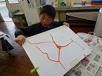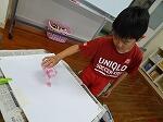 今日の2時間目の授業の様子です。1・2年生は図画工作で、絵具を垂らしてできる模様づくりに挑戦していました。最初、絵具を水で薄めてそれに洗濯のりを混ぜていきます。それを真っ白の画用紙に垂らして、画板ごとかたむけながら模様を作っていきました。思いがけない方向に絵の具が移動したりほかの色と混ざっておもしろい色になったりと、子どもたちは歓声を上げながら、できた模様に一喜一憂していました。絵の具が乾いたら、それを何かに見立てて絵を作っていくのだそうです。できあがりが楽しみですね。