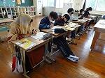 3年生は、算数で「分数×整数」の計算にチャレンジしていました。分子に整数をかけて計算すればよいこと気付き、すらすらと問題を解いていました。4年生も算数で、それぞれ自分にあったペースで、これまで学習した北内容の復習をしていました。先生が3年生と学習している中、分からないところは教え合ったり確認し合ったりする姿も見られました。