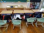 6年生教室に入ると、「あれっ、いつもと席が違う!」と思いました。横一列に6人が並んでいました。今日。残念ながら1人欠席があったので、横1列に並べたようです。授業は国語で「鳥獣戯画」について書かれた文章を読み取っていました。最後に、漢字5問テストがありましたが、「筋肉」という字が難しかったようです。