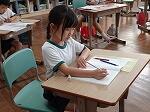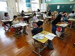 1年生は、国語で「どんなお話ができるかな」という単元を学習していました。教科書に載っている挿絵を見てお話を作る内容です。たくさんの動物たちがいろんなことをしています。1年生は1人ですので、友だちとの会話ではなく先生とお話しながら進めていました。プレゼントの箱を持ったお猿さんの話を想像を膨らませて考えていました。2年生も国語で「紙コップ花火を作ろう」という学習でした。教材文に書かれた作り方をよく読んで、その通りに制作をしており、みんな自分の紙コップ花火を作ることができていました。説明してある内容をよく理解し実際に作ってみるという力は、日常生活でも必要不可欠ですね。