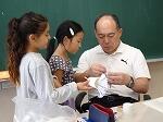 その場で、警察の方から対応の仕方等について、先生方にご指導いただきました。具体的なさすまたの使い方、犯人の確保の際の留意点等、教えていただきました。