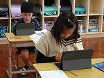 3・4年生は算数でした。3年生は、2桁×1桁の掛け算の問題いチャレンジしていました。20×5はできるけど、25×5はどうなるかな?と既習内容をもとに考えていきます。4年生は、11月27日に行われる予定の「みやざき学習状況調査」の事前調査をやっていました。調査サイトを開き、接続がうまくいくか、問題にこたえられるか、一つ一つ確かめていきます。真剣な表情で、タブレットの画面を凝視していました。