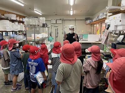 お魚コーナーでは特別にカンパチを捌くところを見せてもらい、子どもたちも興味津々に観察していました。